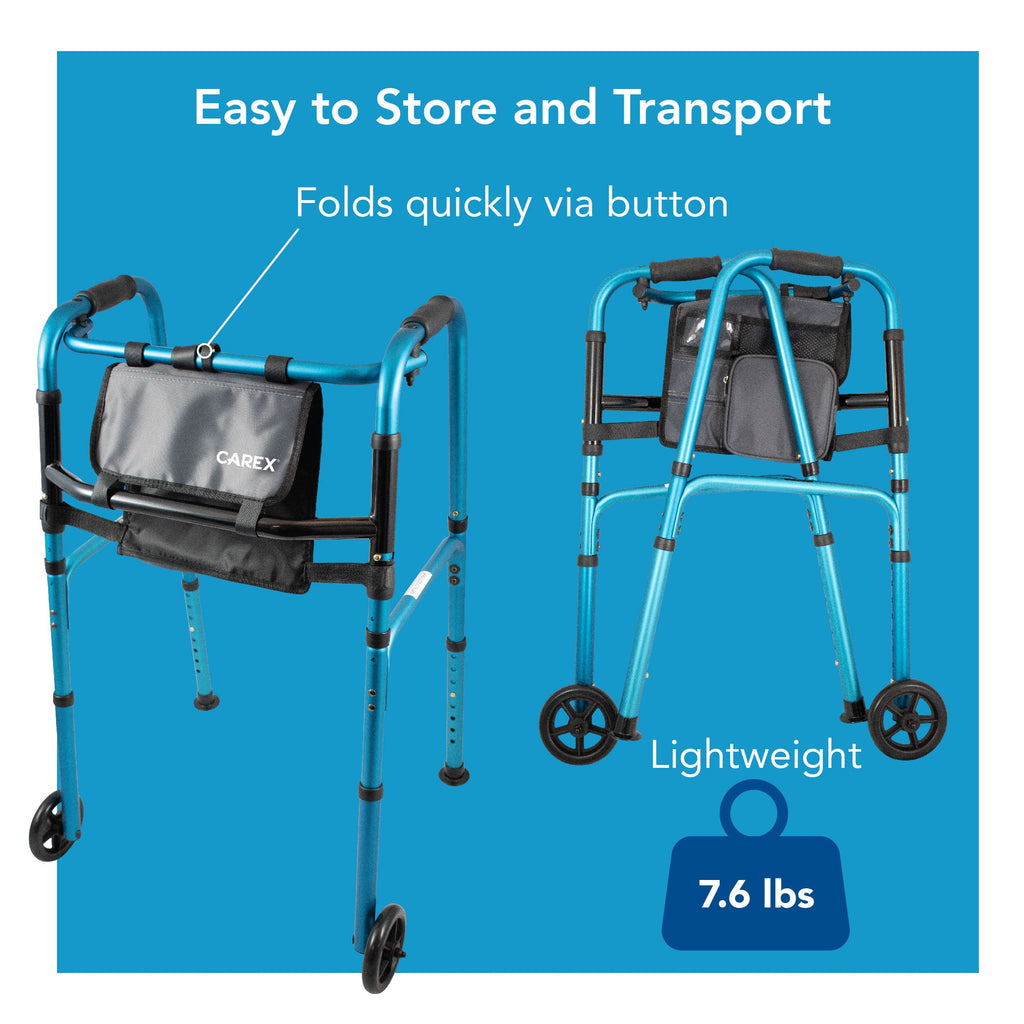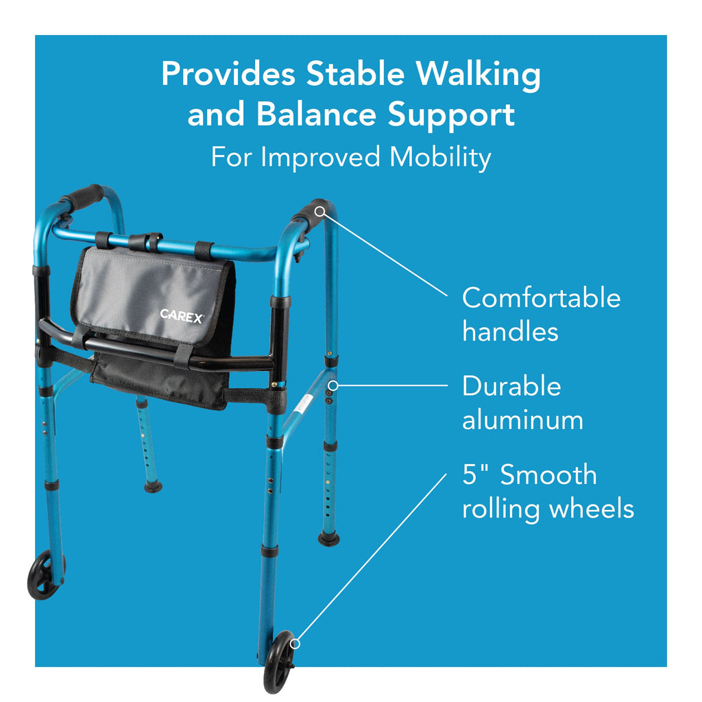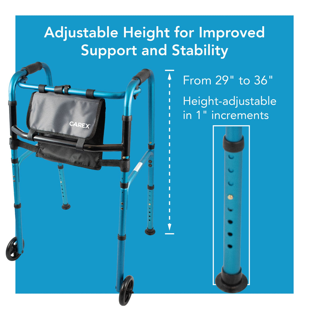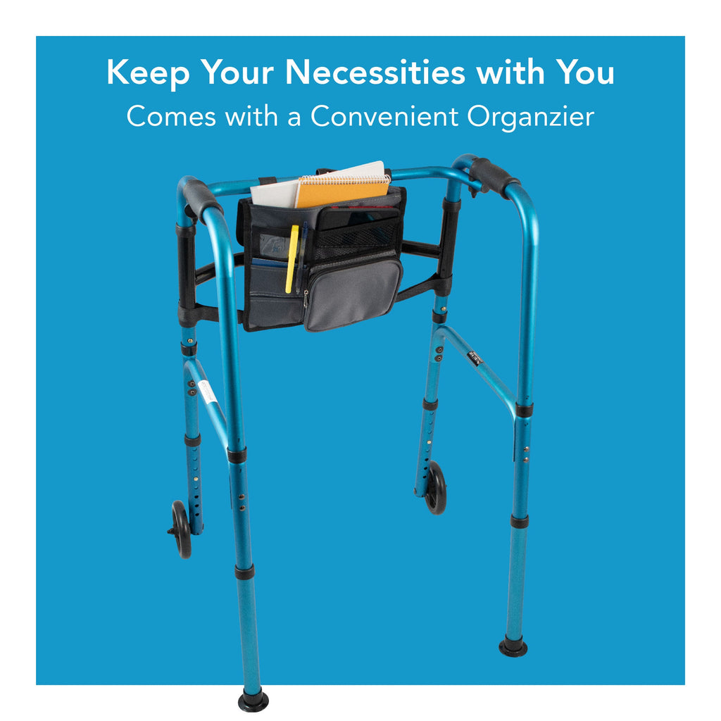Le soutien offert par le déambulateur à deux roues avec siège de Drive en fait une excellente aide à la mobilité si vous ressentez une faiblesse dans vos jambes, si vous avez des difficultés à garder l'équilibre ou si vous risquez de tomber en marchant. Configurées avec des poignées comme un déambulateur, les grandes roues avant pivotantes du déambulateur éliminent le besoin de soulever l'unité pour la faire avancer, ce qui permet un mouvement fluide et facile. De plus, le déambulateur ajoute un siège et un dossier confortables et pratiques qui vous permettent de faire une pause partout où vous allez. L'arrêt est simple et rapide en appuyant sur les pattes arrière pour freiner. Et l’ensemble léger se plie facilement lorsqu’il n’est pas utilisé.