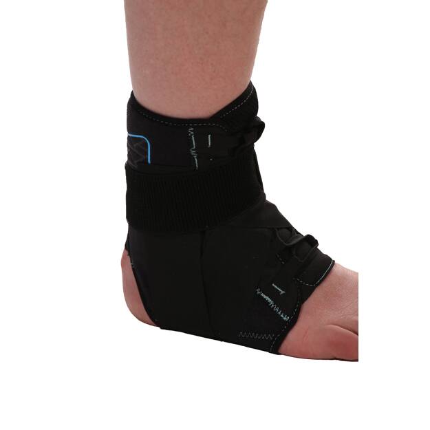 Our ankle brace is made with quality engineered Comfortex latex free material. It is specially designed with two stabilizing figure 8 straps for maximum support and relief of ankle injuries. Our ankle brace laces up to provide ease of application and adjustable compression. It features kinetic panelling and two plastic stays for added support and prevents bunching of the brace.