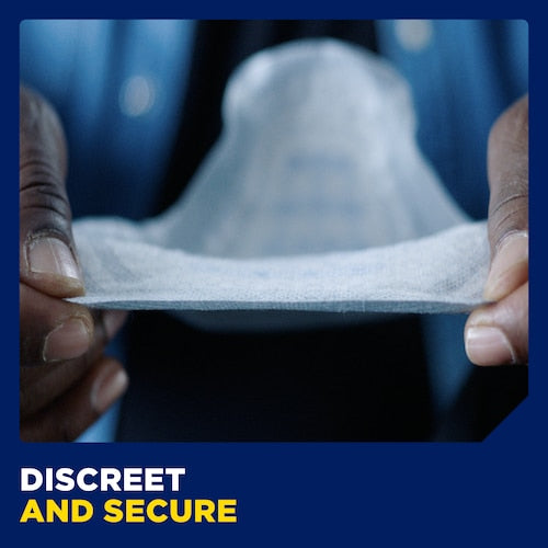 TENA Men Maximum Guard provides comfort, dryness and security designed specifically for men with maximum bladder leakage. These guards have a Secure Absorption Zone for reliable protection. Our cloth-like outer cover provides comfort, while our thin and discreet cup-shaped design offers a snug fit. Adhesive strips secure the guard within your close-fitting underwear and each male incontinence guard comes individually wrapped for on-the-go protection.