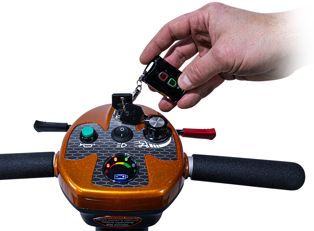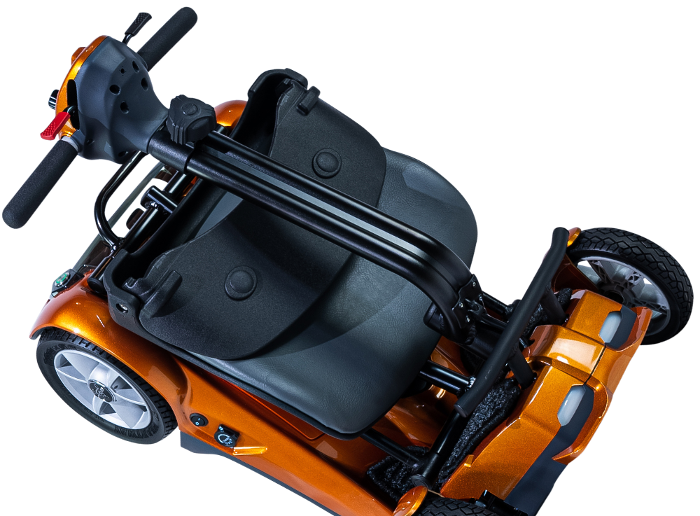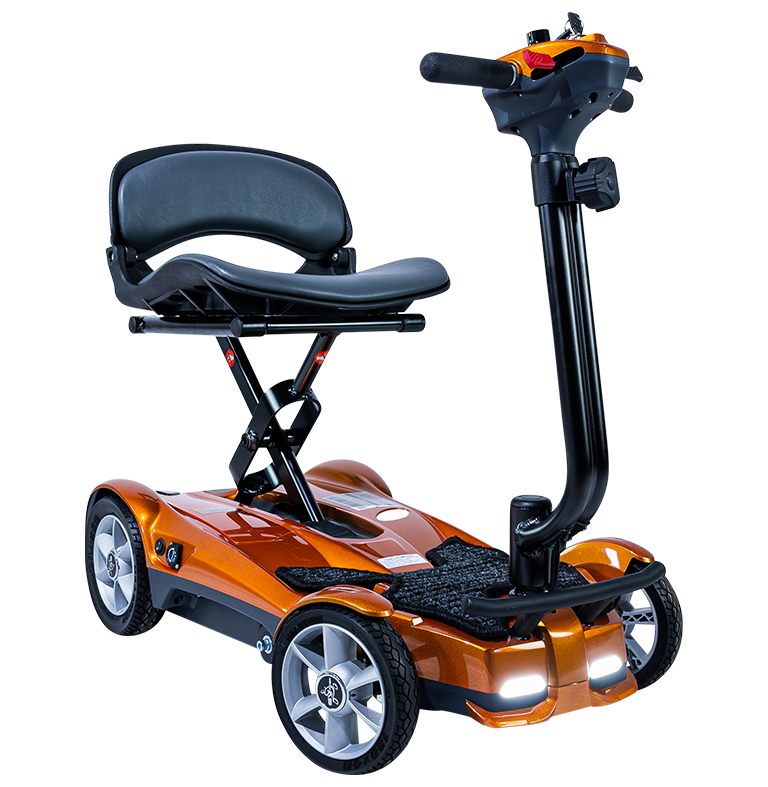 Scooter pliable électriquement avec télécommande. Capacité de poids de 115 kg (250 lb). Jusqu'à 11 km d'autonomie. Feux avant et arrière à LED