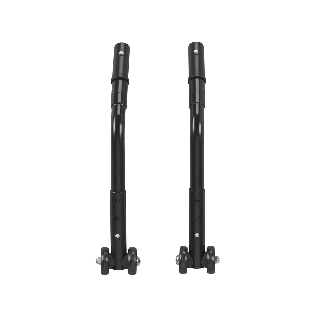 The Adjustable, Universal Rear Anti Tippers with Wheels in chrome or black by Drive Medical can be used on most leading manufacturers wheelchairs. The unique, spring loaded, flip lock mechanism easily flips up and down for traversing curbs safely and securely. A universal spacing sleeve can be added or removed to accommodate a secure fit with Drive Medical Viper Plus Wheelchair.