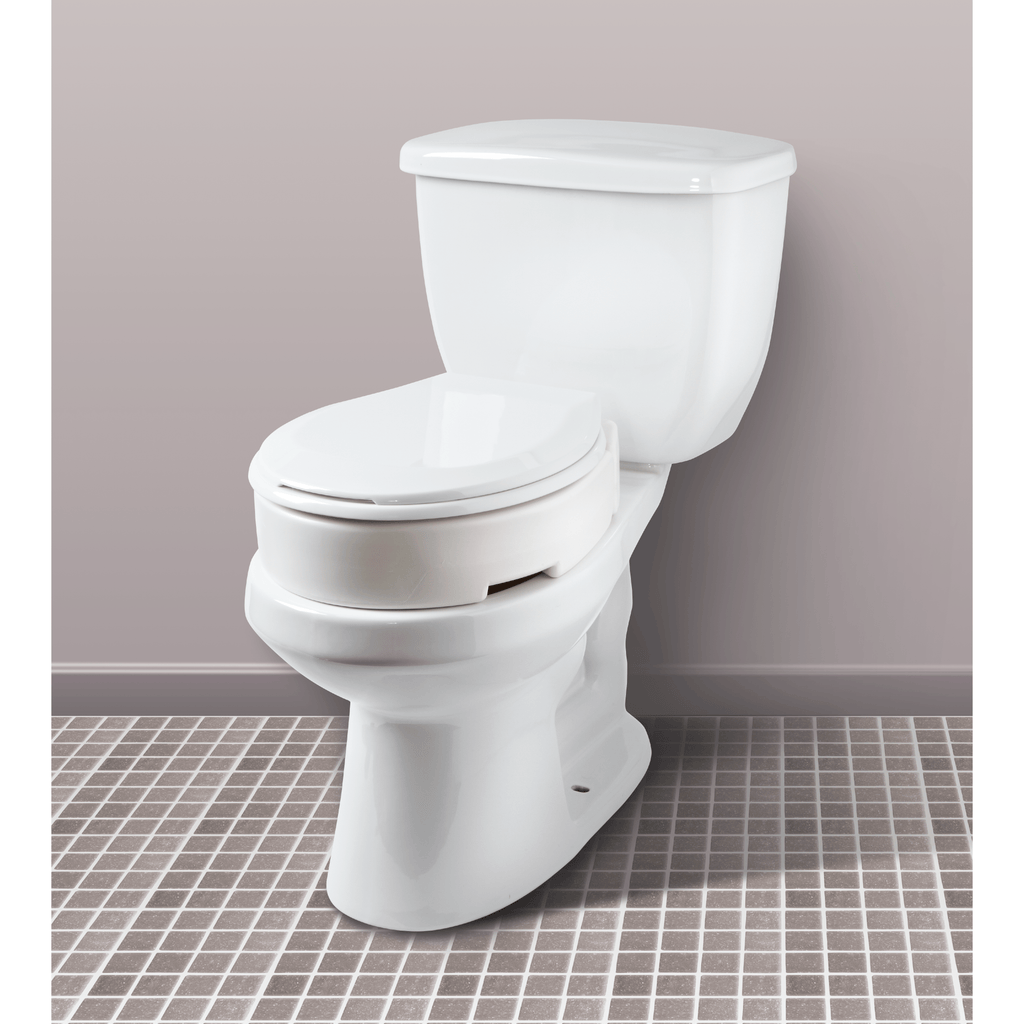 - Adds 3.5" of height of the toilet seat. This is an affordable way to transform your toilet seat for elderly persons, disabled, or those with limited mobility. Its additional height helps in preventing falls.