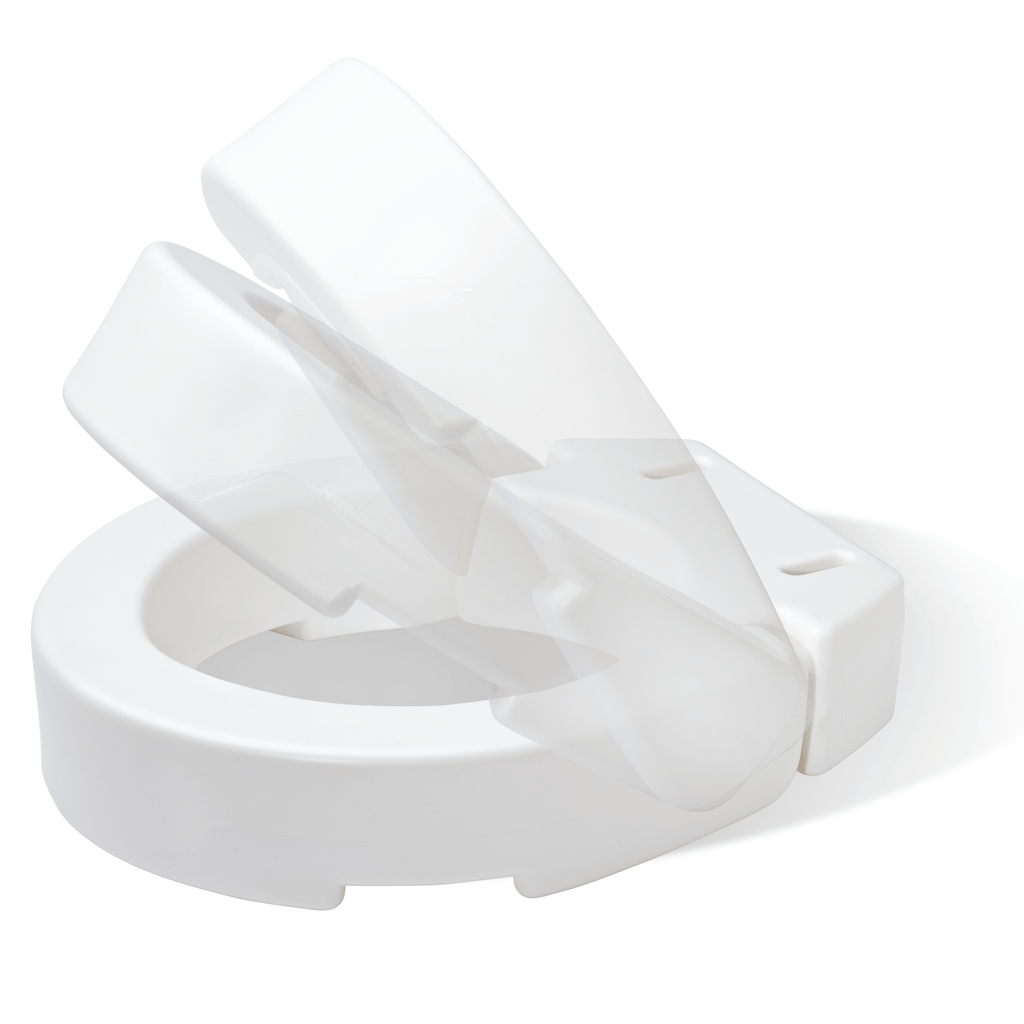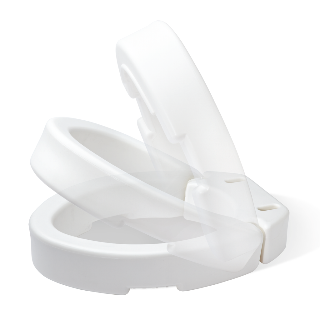 - Hinged design for easy cleaning. Hinged toilet seat elevators are simple to clean and mimic the design of the toilet. Their hinge enables them to be lifted and lowered to clean hard to reach areas. By design, they are easy to clean raised toilet seats.
