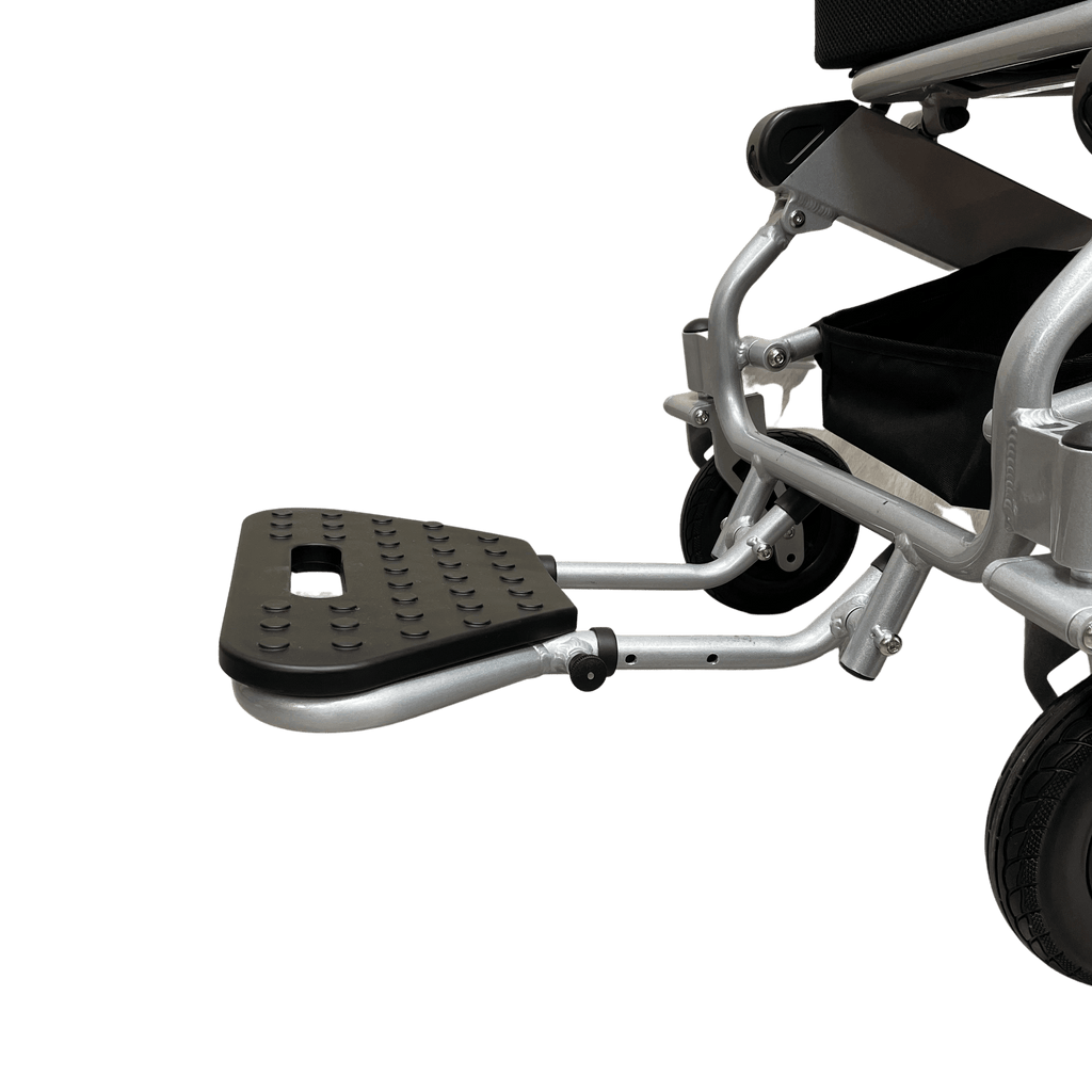 For those that need a little more leg room on their older CITY, we've designed an extendable footrest to retrofit older CITY models. This footrest extends up to 5" total, and offers 3 positions, neutral, +2.5", +6". It still allows your Travel Buggy power wheelchair to fold. It is simple to install, simply remove the existing footrest. This has been a very popular request from our customers and we are happy to finally have a solution!
