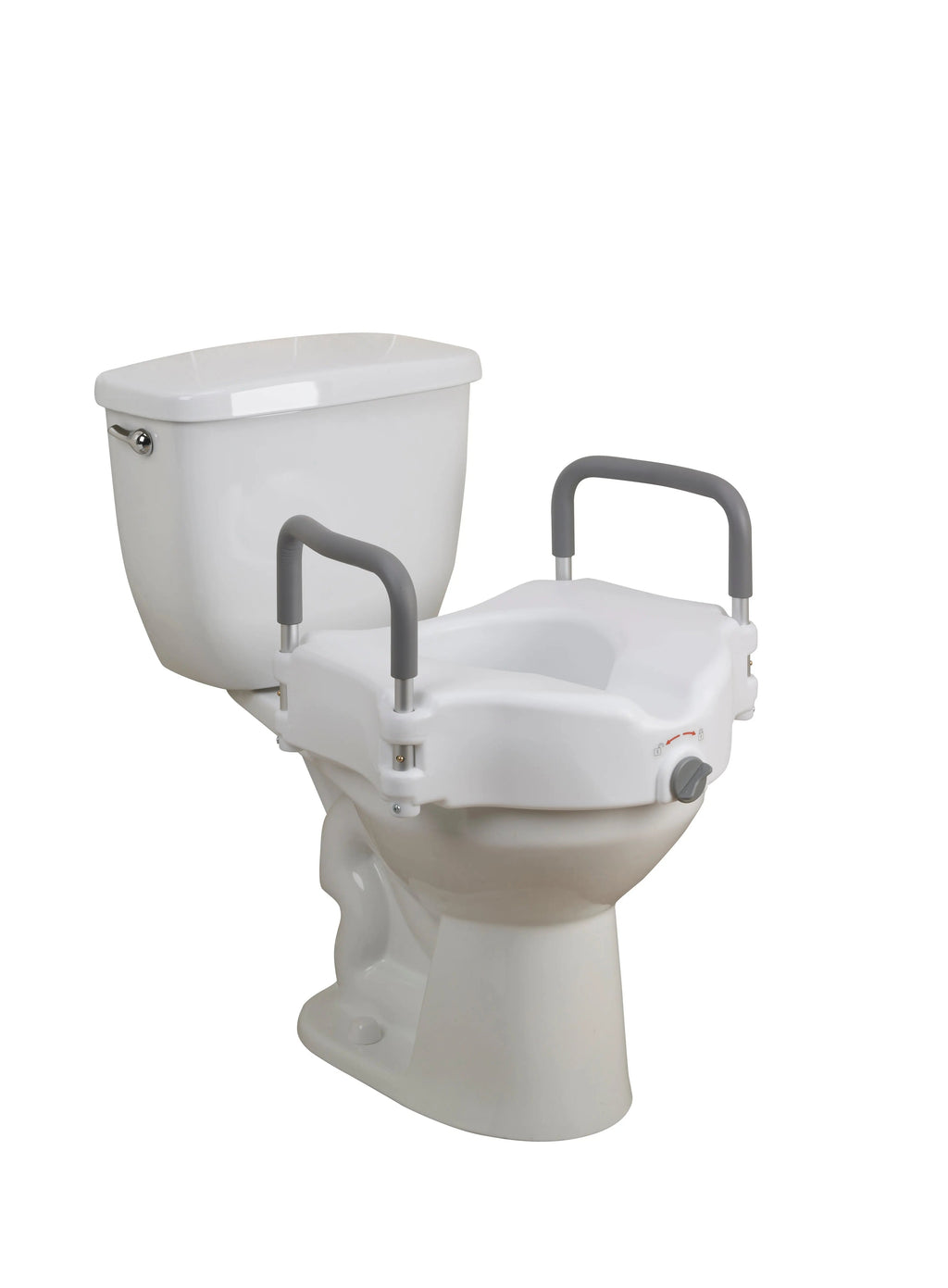 The Drive Medical Elevated Toilet Seat is expertly designed as a bathroom safety solution for individuals who have difficulty sitting down or getting up from the toilet. The newly designed locking device is engineered to fit securely on almost any toilet seat and is simple to operate. Lightweight, portable, and easy to clean, the Elevated Toilet Seat is crafted from heavy-duty molded plastic that is durable enough to withstand regular daily use. The Elevated Toilet Seat features comfortable padded arms for extra support that, if desired, are easily removable without tools.