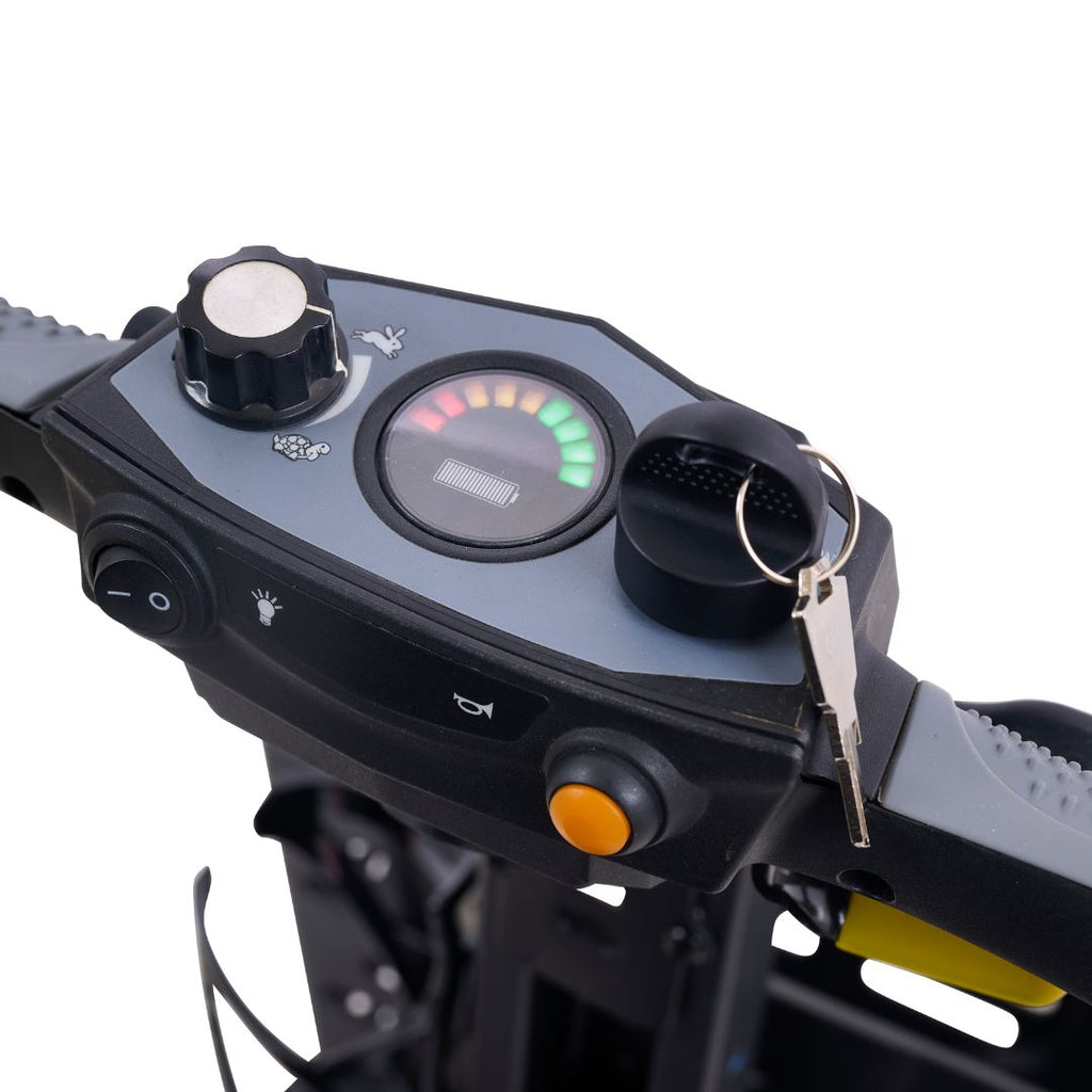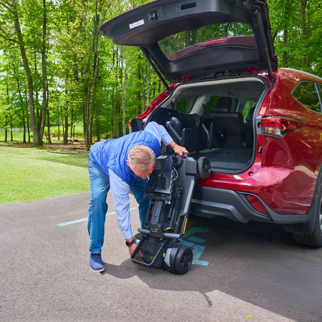 Go on any adventure with this incredibly portable, lightweight travel scooter with a 400 lb. weight capacity. Up to 22 mile coverage with airline-friendly 12.5 AH.