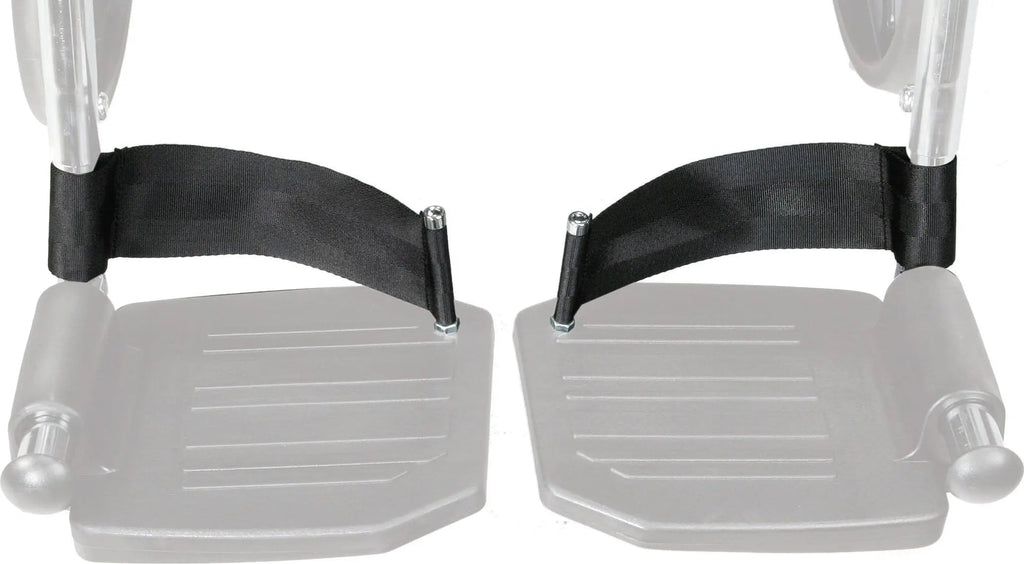 Heel loops are comfortable additions to your wheelchair's footrests. They securely position your heels in place to prevent sliding and to support the weight of your legs when seated in the chair.