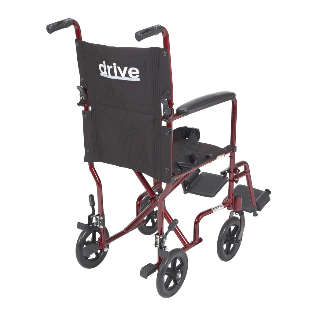 A Trailblazer in Mobility Support and Independence When it comes to the world of superior wheeled mobility, nothing can beat Drive Medical's leading edge and very popular, sturdy yet Lightweight Transport Wheelchair. This all-purpose wheelchair will empower you like nothing else, as it meets and exceeds your mobile needs and expectations. As a maintenance free Lightweight Transport Wheelchair, this personal transport aid arrives at your door ready to roll. Developed with your comfort, safety and ease of use squarely in mind, it's a durable mobility assistant suited to the unique requirements of men and women, as well as younger users of all ages. In addition to the unbeatable comfort and long-lasting design, it can be folded up in a jiffy and its ultra-lightweight frame makes it easy to move it in and out of any vehicle in no time flat. Due to its sturdy, yet lightweight frame and easy maneuverability, your caregiver will also be singing its praises in no time flat. Available with a 17" or 19" width seat and in colors Red, Black, Silver, or Blue. Go ahead...Experience the Drive Difference Now!