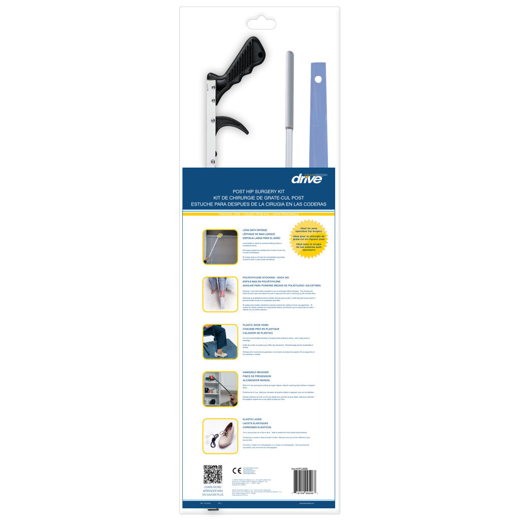 • Contains: Long-Handled Bath Sponge (item # RTL1020), Polyethylene Stocking Aid (item # RTL2012), Hand-Held Reacher, 26" (item # RTL5022), Plastic Shoe Horn (item # RTL2049), Black Elastic Shoe Laces