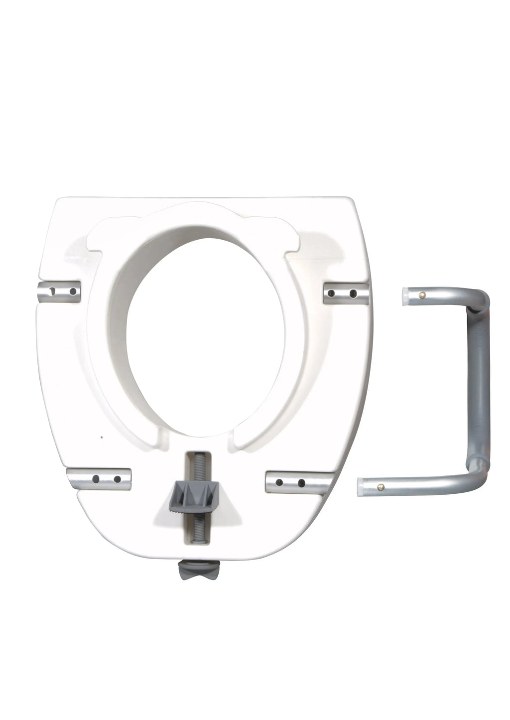 This Premium Elevated Toilet Seat with Lock by Drive Medical fits most elongated toilets. The lock ensures a tight fit providing additional safety and added feeling of security. A wide opening in the front and back allow for worry-free personal hygiene. The elevated seat and padded arms will help individuals who need a boost sitting down or standing up from the toilet. For consumers using a wheelchair, tool free removable arms allow for easy transfer to and from the raised toilet seat.