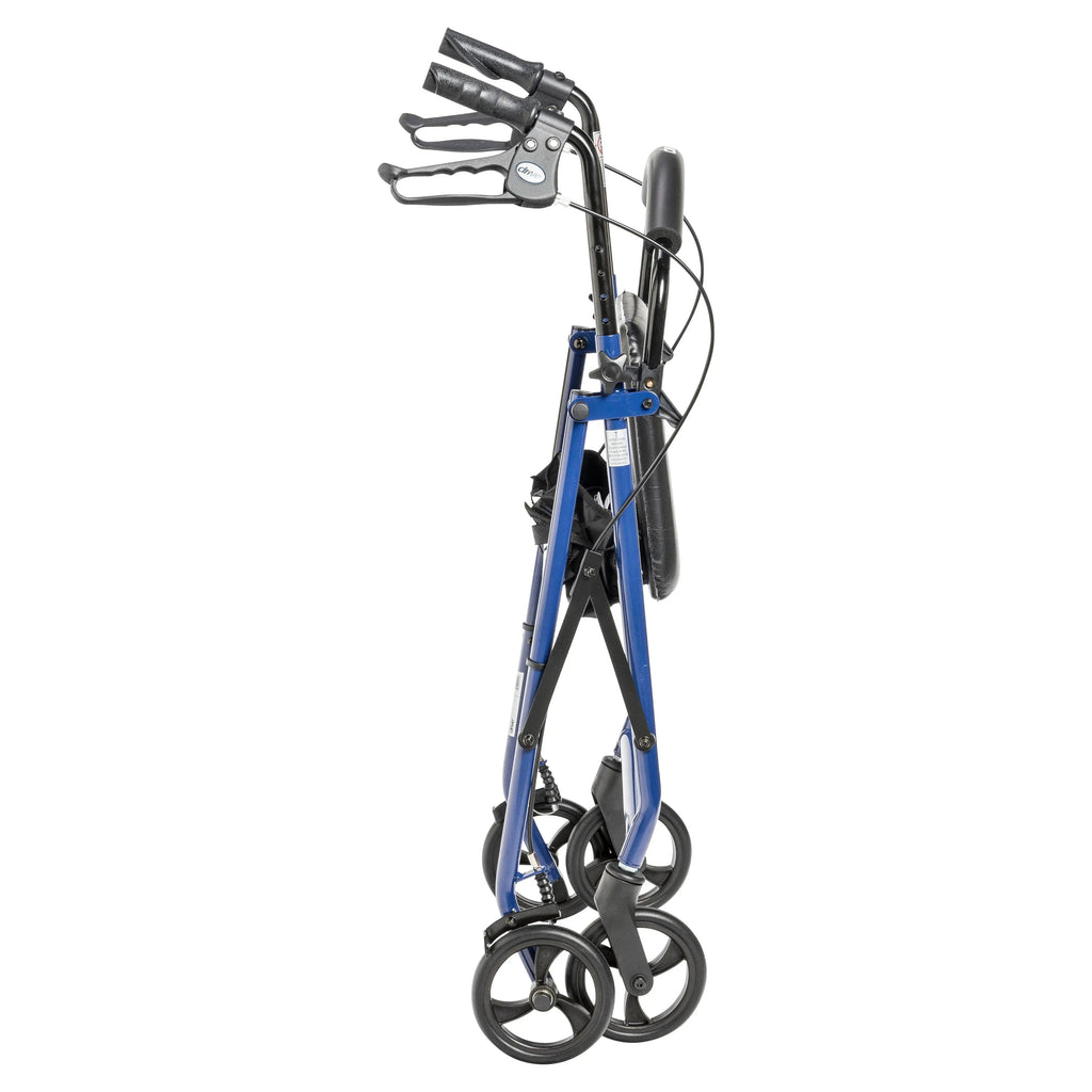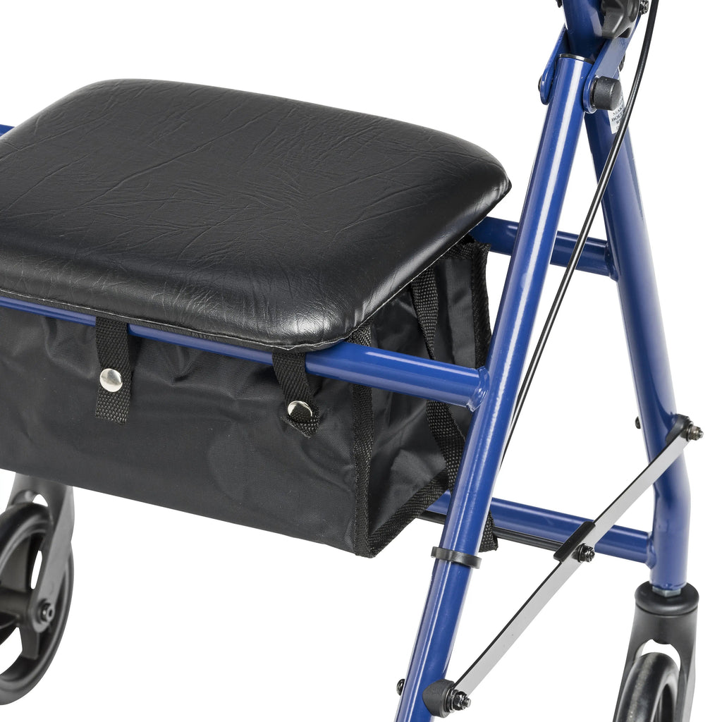 If you're seeking a safe, convenient aid to improving your daily mobility, a Rollator can be the ideal solution. Wheels make a Rollator a superior option over a standard walker, eliminating the need to lift the device and allowing you to walk with an easy, smooth gait. Plus, Rollators are better for traveling over uneven, outdoor terrain, making them great for your active, busy lifestyle. And with the built-in seat found on a Rollator, you'll always have a convenient place to rest. Drive's Rollator with 6" Casters is the perfect unit to suit your needs and your style. It's designed and built for maximum comfort, durability and ease of use with quick folding ability and simple handle height and angle adjustment. It has a unique seamless padded seat for maximum sitting comfort and ease of care. The backrest is also padded and large soft grip wheels ensure smooth travel over a variety of different terrains. It even has a convenient, zippered pouch for privately and securely carrying items with you on the go. Enhance your mobility-and your quality of life-with a Rollator from Drive.