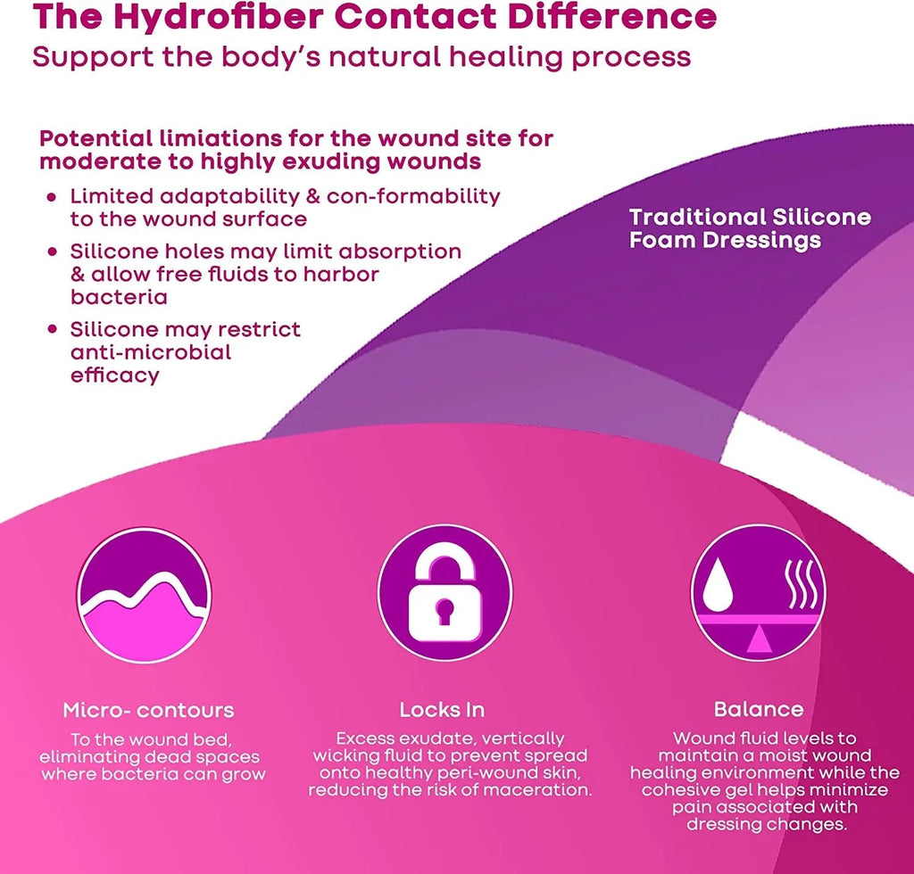 AQUACEL® Foam Hydrofiber® dressing is the simplest and most comfortable solution for your wound care needs. With patented waterproof/bacteria barrier, you can enjoy protection against viral and bacterial infection while also keeping excess moisture under control. A soft absorbent foam pad ensures that your patient remains comfortable while the AQUACEL® interface gels on contact with moisture to maintain a moist healing environment, reducing recovery time and risk of secondary infection. Plus, our gentle silicone adhesive adheres to skin without sticking to the wound bed, making it perfect for even sensitive skin. Get the best in security, comfort, and convenience with AQUACEL® Foam Hydrofiber® Dressing - try it today!