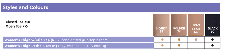 *Thigh High garments have a silicone band at the top of garment to prevent slipping and rolling.